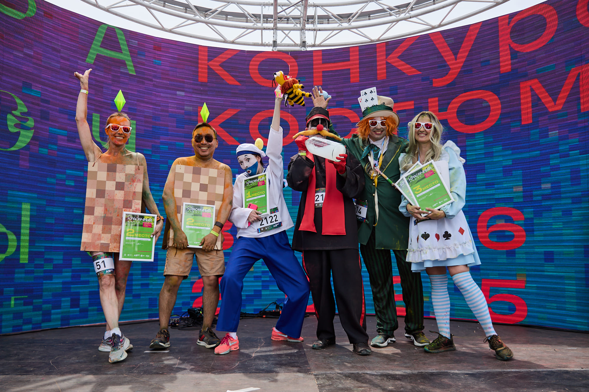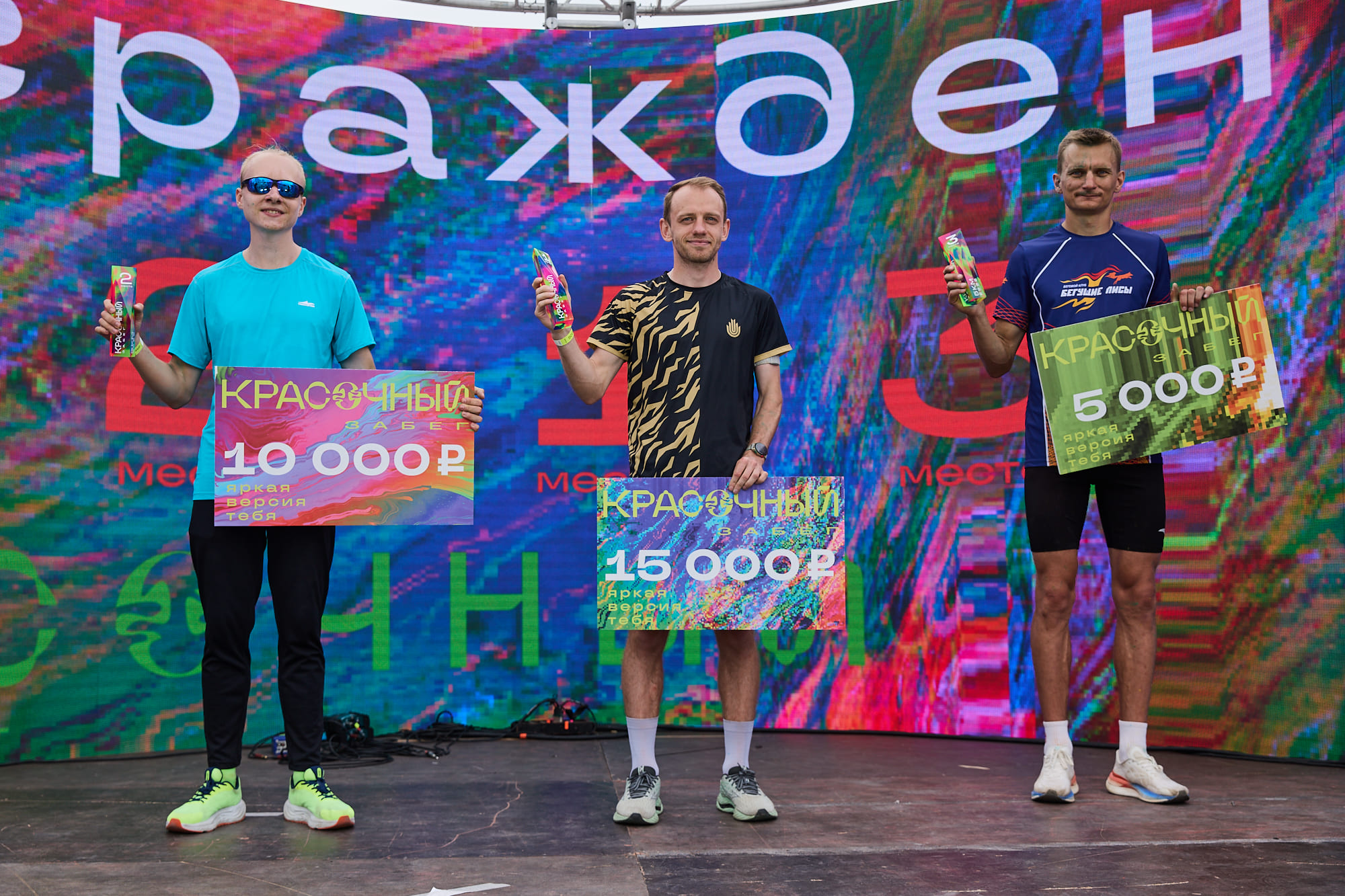 Красочный забег — это развлекательный старт. Судьи фиксируют результаты только первых трёх мужчин и женщин. Результаты участников не измеряются.