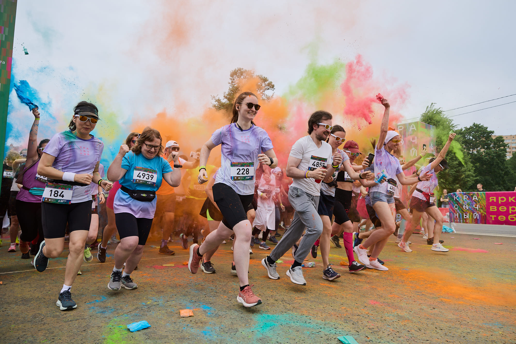 Старт Красочного забега разделён на несколько кластеров. Вы можете занять любой свободный кластер. В стартовые кластеры допускаются только бегуны со стартовыми номерами.