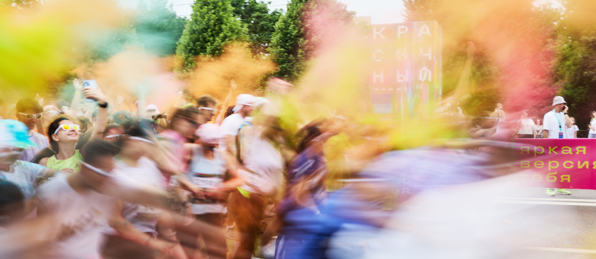 7 июня 2026 года встречаемся на самом ярком забеге Бегового сообщества. Участники пробегут 5 км через несколько красочных зон, где их будут осыпать красками — присоединяйтесь к самому массовому фан-рану сезона и вы.